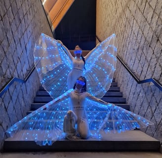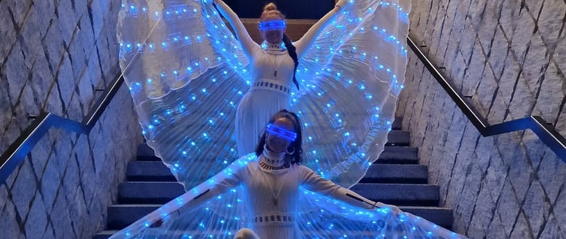 Amb dansa d’ales d’Isis lluminoses, malabars amb llums LED i un espectacular xou de foc, els 60 comensals van gaudir d’una nit única plena d'entreteniment i emoció.