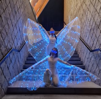 Show Dinner w L'Abarset w Andorze, ekskluzywnej restauracji dla wyjątkowych grup. Żonglerka LED, tańce z skrzydłami Izydy oraz spektakularny pokaz ognia były głównymi atrakcjami tego wydarzenia w jednej z najbardziej emblematycznych restauracji Księstwa Andory.